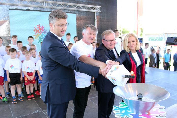 Nakon paljenja plamena, gradonačelnik Ljubomir Kolarek predao je baklju izaslanici gradonačelnice grada Mali Lošinj Martini Lipovac jer će taj grad slijedeći ugostiti Sportske igre mladih.